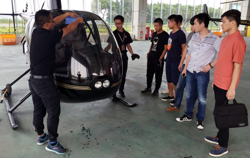 此次参观的目的,主要是让同学们细致了解若尔通航集团的情况、日常飞行训练要求等。同时亲身感受一下罗宾逊R44机型的结构和各种性能。若尔通航集团主席吕勇先生在现场与同学们座谈,了解他们对学飞的想法,学飞碰到的困难,并且现场解答同学们提出的问题。若尔通航集团主席吕勇在座谈后还对我系14名飞行学员进行了一一面试,最终有7名同学顺利通过面试,可与若尔通航集团签订培训+就业协议,赴基地学习飞行执照,并最终在若尔通航集团就业,正式地成为直升机飞行员。
