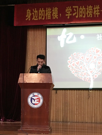 志愿者代表石建永同学发言