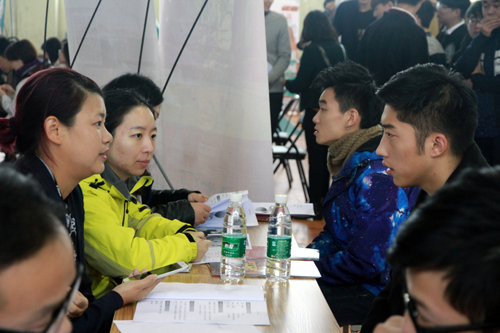 户外露出 积极为学生就业搭建平台,图为2016届毕业生双选会现场场景。(资料照片)