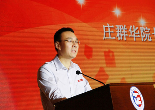 院长庄群华发表了以“坚守理想 勇于创新 开启人生新航程”为主题的讲话,他首先代表全体教职员工向全体2016届毕业生圆满完成学业顺利毕业表示热烈的祝贺,他指出,三年来,2016届毕业生积极向上、不断努力,在强化技能、完善自我的道路上奋力前行,增长知识,收获友谊,同时也取得了丰硕的成果,为学院赢得了荣誉。