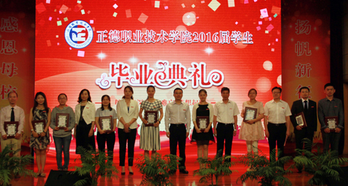 典礼开始后,全场起立,奏唱国歌。随后,刘小廷副院长宣读了《关于准予2016届张颖等学生毕业的决定》,赵凯雷副院长宣读了《关于表彰2016届毕业生荣誉称号获得者的决定》并向24名优秀毕业生代表颁发荣誉证书,党委书记、副院长左彤云宣读了《关于表彰2015年就业工作先进集体和先进个人的决定》并向就业工作先进单位、先进个人颁奖。