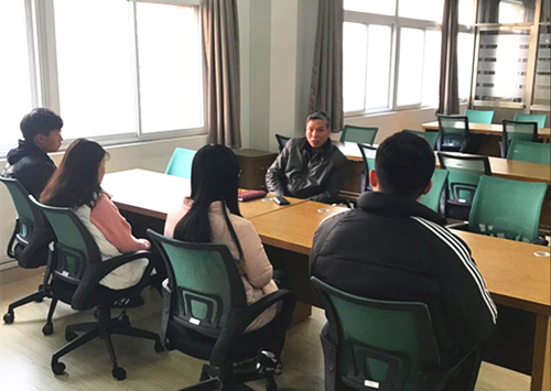 副院长刘小廷担任了经济与管理系多位同学的导师,他先对本组的学生做了基本了解,学生们对自己现在的学习生活做了简单的总结,刘小廷对学生今后的学习、考级考证提出了期望,他提醒大家树立正确的人生观、价值观,要制定适合自己的学习目标及计划,争取在大学三年取得自己满意的成绩。