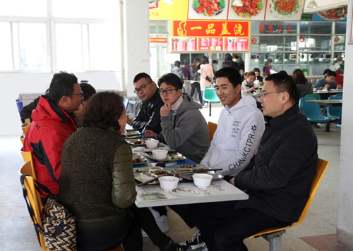 2017年3月15日中午,正值午餐时间,学院第三食堂一隅洋溢着浓浓的温情。院长庄群华邀请自己作为导师负责联系的五名学生共进午餐。党政办公室主任王伟、教务处处长吕立志、学生处处长姚强也参与了本次活动。