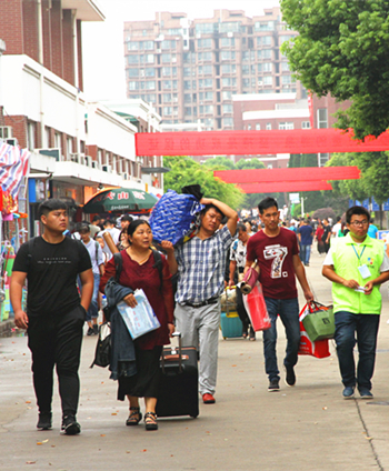 红色的拱门和气球,迎风翻飞的五彩旗帜,到处是肩扛手提行李的新生家长,触目皆是新生们兴奋的笑容。9月3日,秋风秋雨中,户外露出 迎来2017级全体新生,在全院各部门教职工以及志愿者的努力下,新生接待工作顺利完成。