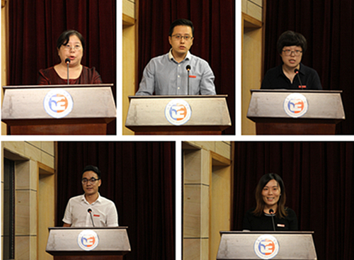 教务处副处长王俊、艺术设计与建筑工程系主任谢岚作为先进单位代表先后发言,谈了各自部门在教育教学改革和系部人才培养方面的一些成功做法;优秀教师代表,经济与管理系钱鑫老师、优秀辅导员代表,汽车工程系朱翔老师和优秀管理工作者代表,经济与管理系吕品副主任分别发言,他们介绍了自己在各自岗位上创新工作,无私奉献的动人事迹,他们的发言贴近实际,对各部门以及与会教职工今后的工作富有启发意义,获得大家热烈的掌声。