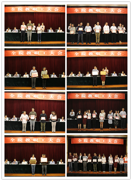 副院长薛忠云、刘小廷、赵凯雷分别宣读了相关表彰决定,会议表彰了2016-2017学年先进单位、优秀教职工,学院“爱生”主题教育实践活动先进集体、爱生标兵,2016-2017学年优秀课程标准获奖者, 2016年毕业生就业工作先进集体和先进个人。
