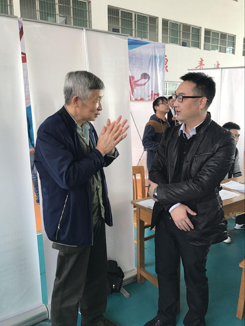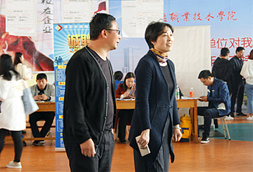 系部领导在招聘会现场