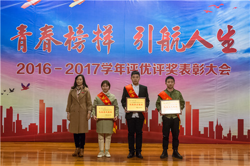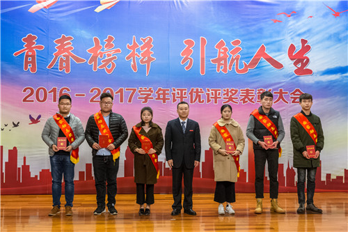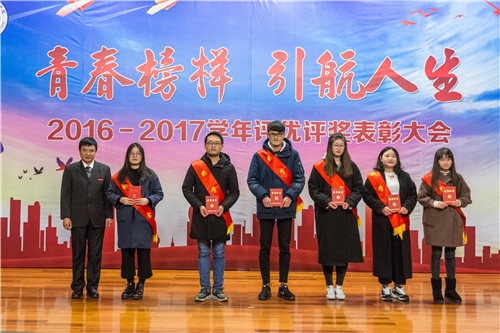 2016-2017学年评优评奖表彰大会在报告厅隆重举行。院领导庄群华、左彤云、薛忠云、赵湘莲,各单位负责人,获奖代表及各系学生代表参加了大会。