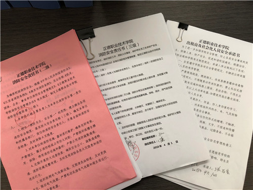 于近期组织开展2018年度消防安全责任制签订工作。此次防火安全责任签订工作按照“谁主管,谁负责”的原则,共与院二级单位主要负责人签订责任书17份,同时督促指导二级单位与各办公室、实验室签订三级责任书179份。后勤处在落实二、三级安全责任书的同时,将社会化服务单位员工纳入到安全防火的责任体系之中,共与社会化服务人员签订消防安全承诺书184份,做到防火安全无盲点、无死角。此次防火安全责任书的签订,进一步提高了全员防火安全责任意识,进一步明确了消防安全工作主体责任、日常职责。