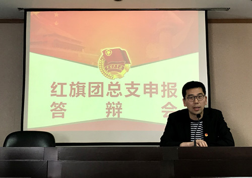 祖国书记首先对本年度“五四红旗团总支”的申报情况及举行答辩会目的和评分标准、程序等作了简要说明。随后,申报“五四红旗团总支”的6个系的团总支书记充分利用PPT进行现场讲演。在答辩会现场,各团总支分别围绕团总支组织架构、思想引领、社会实践活动及丰富支部文化建设等方面对团总支工作进行详细介绍及重点展示。