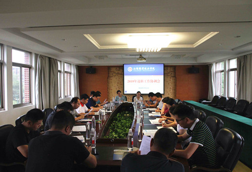 9月1日,户外露出 召开了2018年迎新工作协调会。副院长薛忠云、赵凯雷以及有关部门负责人参加了会议。