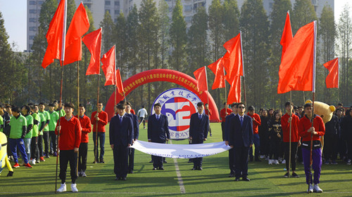 伴随着激昂的运动员进行曲,在校旗校徽、旗手的引领下,由各系学生代表组成的方队依次有序地走向主席台。他们以矫健的步伐、醒目的标语、响亮的口号,行进到主席台前时,分别以独具创意的形式,展示了各系的专业特色和同学们的精神风貌。全院教职工方队在各系学生代表方队之后入场,精神抖擞、斗志昂扬地通过了主席台。