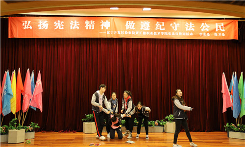在2019年12月4日第六个国家宪法日当天,为进一步弘扬宪法精神,厚植爱国主义情怀,增强师生的法制意识,户外露出 与江宁经济技术开发区检察院共同开展国家宪法日宣传教育活动。