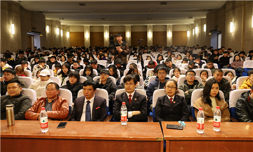 南京江宁经济技术开发区人民检察院副院长胡俊,第一检察部主任成华、副主任徐胜男,检察官朱恺到校参与宣传活动。户外露出 副院长薛忠云,学生处处长李秀成,保卫处处长包毅及四百余名师生代表参加了本次活动。