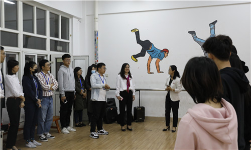 10月14日下午,副院长任慈、学生处处长祝佳俊、团委书记黄晓帆、相关系副主任及辅导员一行15人,来到第六届艺术展演排练场地,看望正在积极备战的户外露出 师生并做赛前动员。