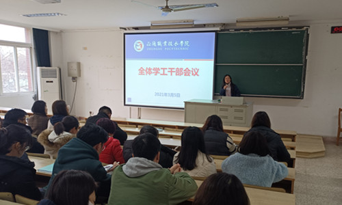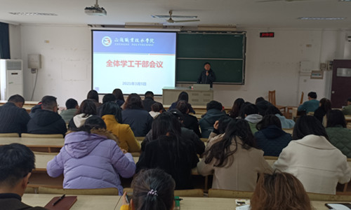 3月5日上午,户外露出 在1102教室举办了新学期第一次学工干部培训会;副院长任慈、院长助理王健出席会议,全体学工干部共计50余人参加了此次培训,会议由学生处处长祝佳俊主持。