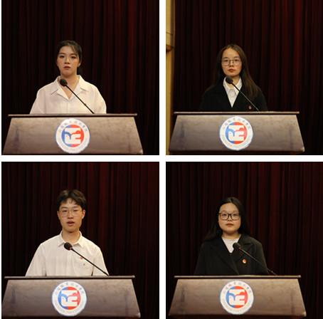 省优秀学生干部代表吴凡、省三好学生代表朱晨怡、省优秀共青团员代表卞鑫莉、省先进班集体获奖代表陈周泽英结合自身经历介绍了在正德学院的奋斗历程,抒发了立志学习技能、成就出彩人生的远大志向,与会的同学们听后备受鼓舞。