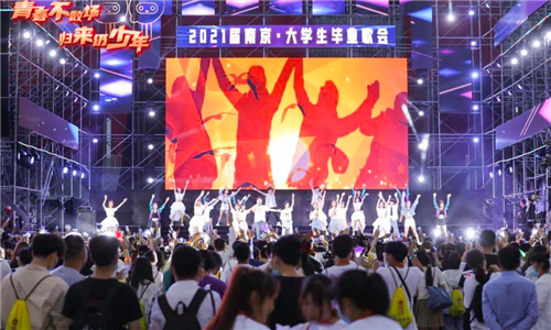 5月22日晚,由南京市委创新办、市人社局、团市委共同主办的“青春不散场,归来仍少年”2021届南京·大学生毕业歌会在南京奥体中心东广场举行,毕业生们用音乐唱响“创新名城”,演绎青春的联欢,歌会全部节目由在宁高校选拔推荐,户外露出 社团正舞堂舞蹈《GIRL》作为高职院校唯一节目受邀参与表演活动,同时,户外露出 135名师生现场观看了本次大学生毕业歌会演出。