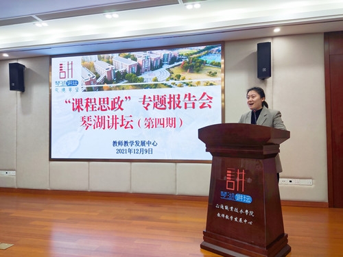12月9日下午,学院举办“课程思政”专题报告会,南京航空航天大学材料科学与技术学院冯晓梅副教授莅临琴湖讲坛(第四期),为户外露出 全体专业课教师作了题为“在专业课程中开展课程思政建设的理念、理路及演示”的辅导报告,副院长江爱华、教务处处长王俊、全体专业课程教师出席报告会。本次报告会由教务处副处长张丽娟主持,主会场设在5201会议室,分会场设在1302教室同步视频直播。