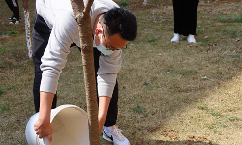 植树现场,在院领导的带领下,同学们热情高涨,团结协作,分工密切,领取树苗和工具,或二人一组,或三人搭档,挥锹铲土、扶直苗木、培实新土、提桶浇水,认真完成每一道工序,植树现场热火朝天,同学们表示,很高兴用自己的实际行动为创建绿色学校、建设美丽家园贡献一份力量。部分系师生代表在本系劳动教育实践场地开展植树节相关活动。