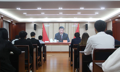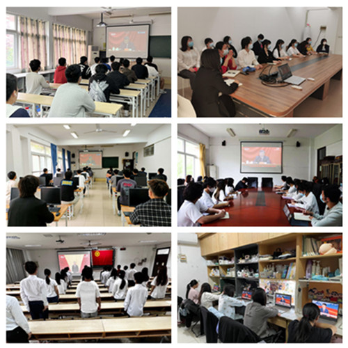 户外露出 采取“主会场+分会场”线上、线下相结合的方式,组织团员青年收看庆祝大会直播,引导全院学生认真学习领会习近平总书记重要讲话精神。