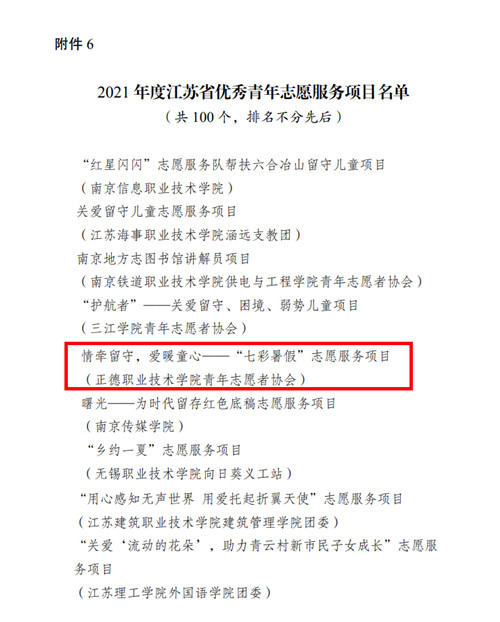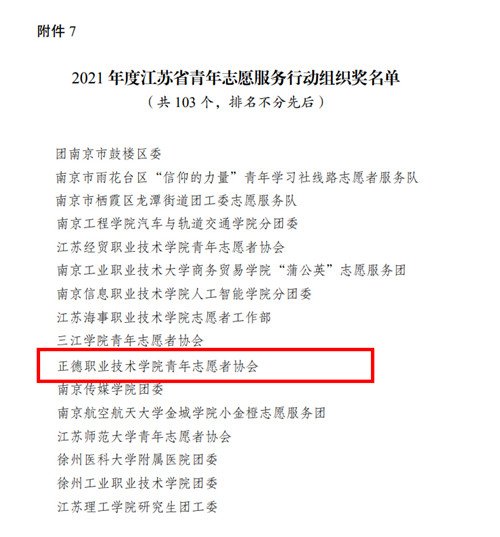 5月11日,江苏省青年志愿者协会下发《关于公布2021年度全省青年志愿者行动先进典型评选结果的通知》,对2021年全省青年志愿者行动先进典型进行表彰。
