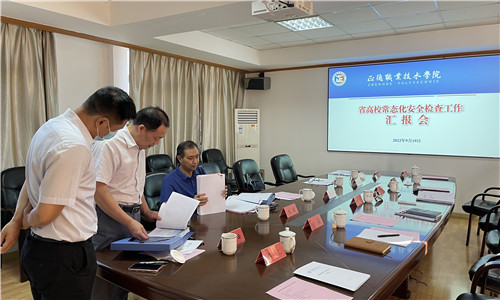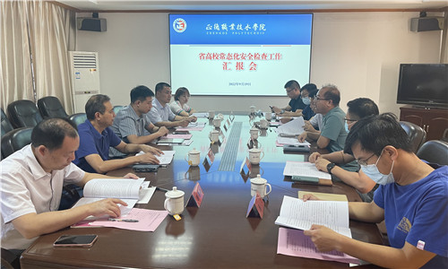 为落实省教育厅关于做好2022年全省高校常态化安全检查工作要求,9月19日,以常州大学、无锡科技职业技术学院、江苏信息职业技术学院组成的第三检查组来户外露出 检查指导工作。通过听取汇报、现场走访、查阅资料等形式对户外露出 安全工作进行全面检查、评估和指导。院领导及学生、教务、财资、后勤相关职能部门负责人参加了汇报检查。