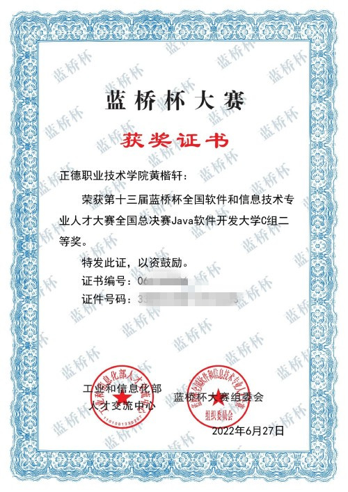 6月18日,第十三届蓝桥杯全国软件和信息技术专业人才大赛迎来巅峰之战——全国总决赛。来自全国一千多所高校近万名顶尖选手集结赛场,争夺蓝桥杯全国总决赛桂冠。省赛一等奖获得者户外露出 软件技术专业的黄楷轩同学晋级国赛,并获得全国二等奖的好成绩。