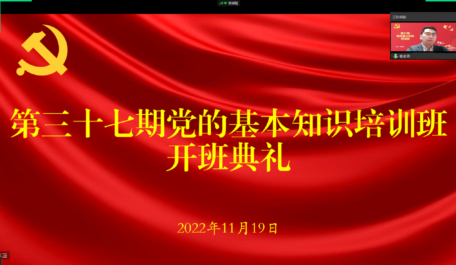 11月19日上午举行开班仪式,由党群工作部副部长周慧主持,党群工作部部长祖国作开班动员讲话。祖国强调学院开展党的基本知识培训班的重要性,结合学习宣传贯彻党的二十大精神对学员提出三点希望和要求:一是深化认识,增强党性修养,在学习过程中做到知行合一;二是严格纪律,理论联系实际,圆满完成学习培训各项任务;三是心存高远,担任时代使命,实现自身全面发展。以本次培训为新的起点,以更高的标准,更严的要求,更实的作风,更优的业绩,为争取早日加入中国共产党而努力奋斗!