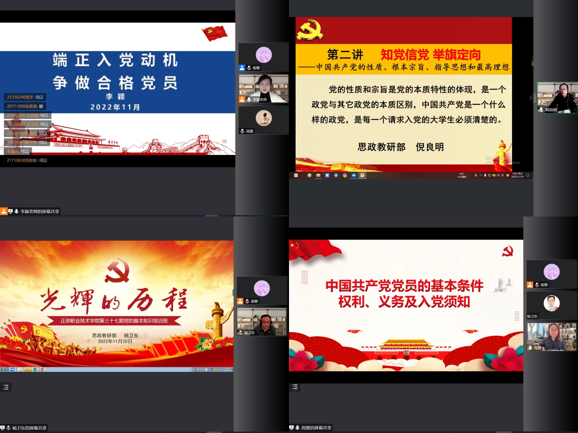 党校精心筹备本期培训班,邀请了思政教研部杨卫东主任、李颖、倪良明,周慧四位老师,在线以专题报告、视频辅导、影片教育等形式,围绕党的理论知识等内容集中授课,使学员进一步端正了入党动机,加强了党性锻炼。同时,课后要求各党支部组织学员积极参加志愿服务等社会实践,鼓励学员努力用担当践行初心使命,为推进中国式现代化贡献青春力量。