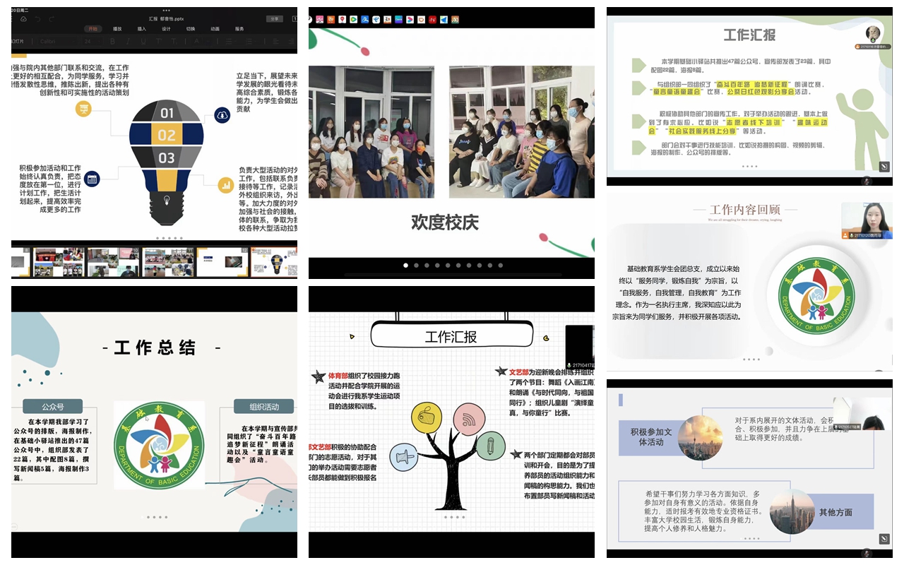 12月20日下午,基础教育学生会2022-2023学年第一学期述职评议大会于线上举行。基础教育系党支部书记杨春娟,团总支书记魏玮参加本次述职评议会,会议由执行主席魏雨菲主持。