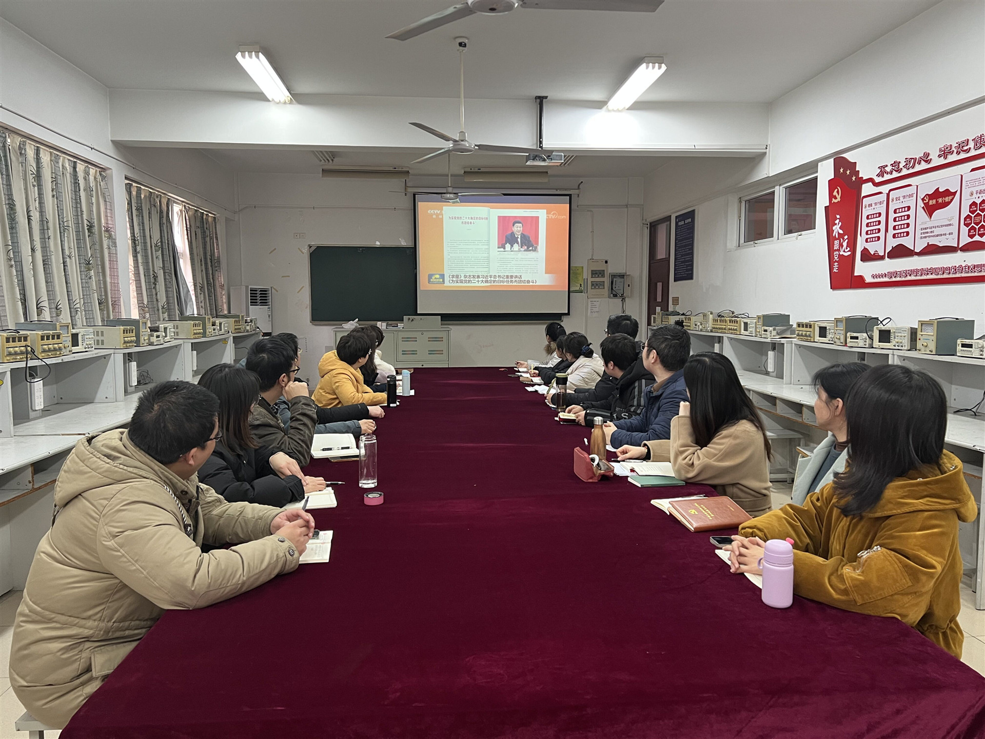2月16日下午,电子与信息技术系党支部在6206教室开展新学期第一次政治理论学习,支部书记赵欣主持,支部全体党员教师参会。