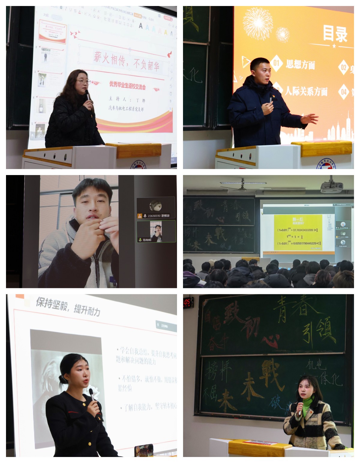 为充分发挥我系优秀毕业生的示范引领作用,引导学子们树立正确的世界观、人生观、价值观,明确人生的努力方向。汽车与机电工程系党支部于2月23日邀请优秀毕业生返校,与学弟学妹们进行了一场线上线下相结合的交流,分享了自己的学习方法和工作经验,畅谈精彩的大学生活。