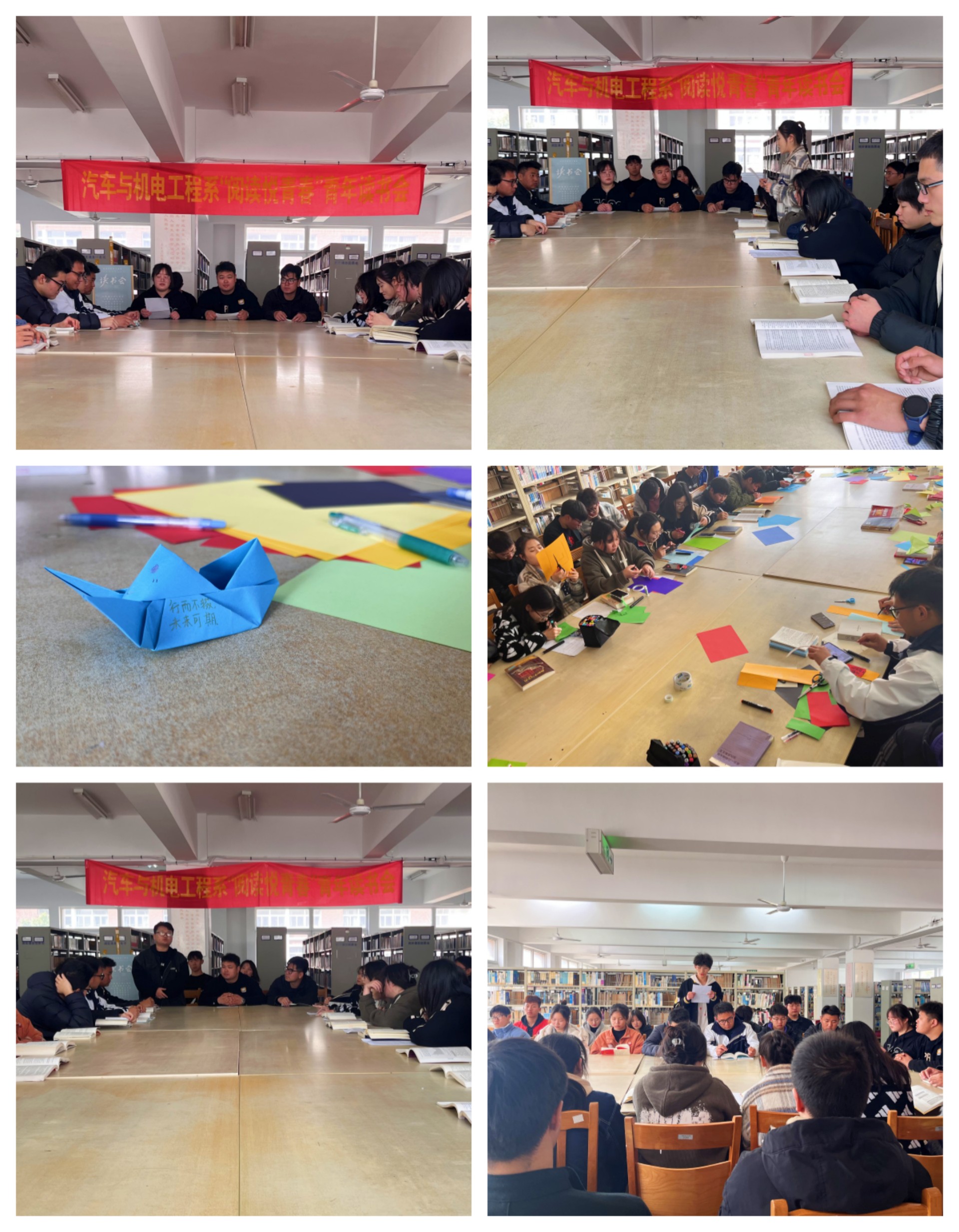为学习贯彻党的二十大精神,激发同学们的爱国爱党热情,让同学们在阅读中寻找灵感,在交流中碰撞出思想的火花,鼓励汽车与机电工程系学子在阅读中增强文化自信,深耕文化底蕴,提升文化素养。2023年3月2日下午,汽车与机电工程系于户外露出 图书馆开展“阅读悦青春,逐梦新征程”读书分享会,汽机系学生会成员及部分22级同学参加活动。