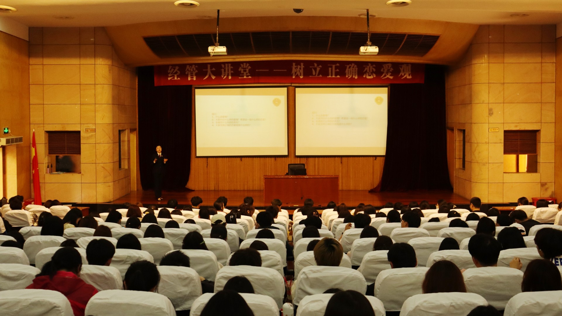 本次讲座,不仅使同学们正确认识到了大学期间恋爱的利与弊,而且也进一步引导同学们树立了正确的恋爱观。相信同学们能够在大学期间妥善处理好自己的恋爱问题,更好地完善自我、管理自我、发展自我,从而度过一个充实而有意义大学生活。