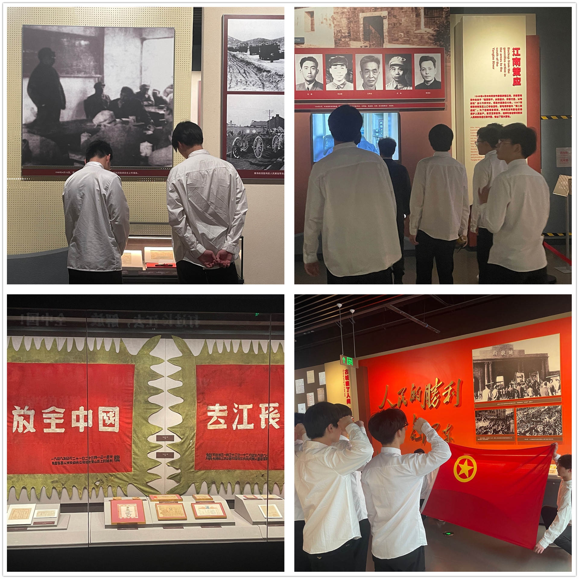 在渡江胜利纪念馆,电信系新发展团员们跟随着馆内讲解员的脚步依次参观解放广场、渡江战役总前委群雕、七大展厅、半景画馆、功勋长廊及千余件珍贵的革命文物。大家认真聆听讲解,新发展团员们深切缅怀革命先烈,向革命先烈们致以最崇高的敬意。在活动的最后,电信系新发展团员们一起重温入团誓词,进一步坚定了团员青年的理想信念。