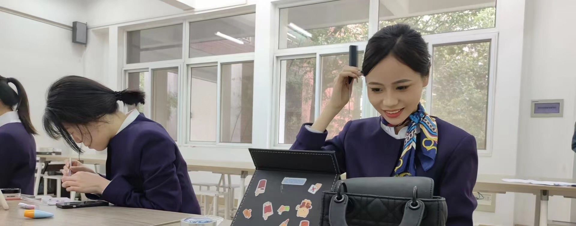 为全面贯彻党的二十大精神,落实习近平总书记在全国职业教育大会上对职业教育工作的重要指示精神、对专业人才培养的要求,进一步提高我系民航人才培养质量。民用航空系于3月24日在5109举办空中乘务专业礼仪技能大赛。本次大赛由民用航空系两名专业老师担任评委。