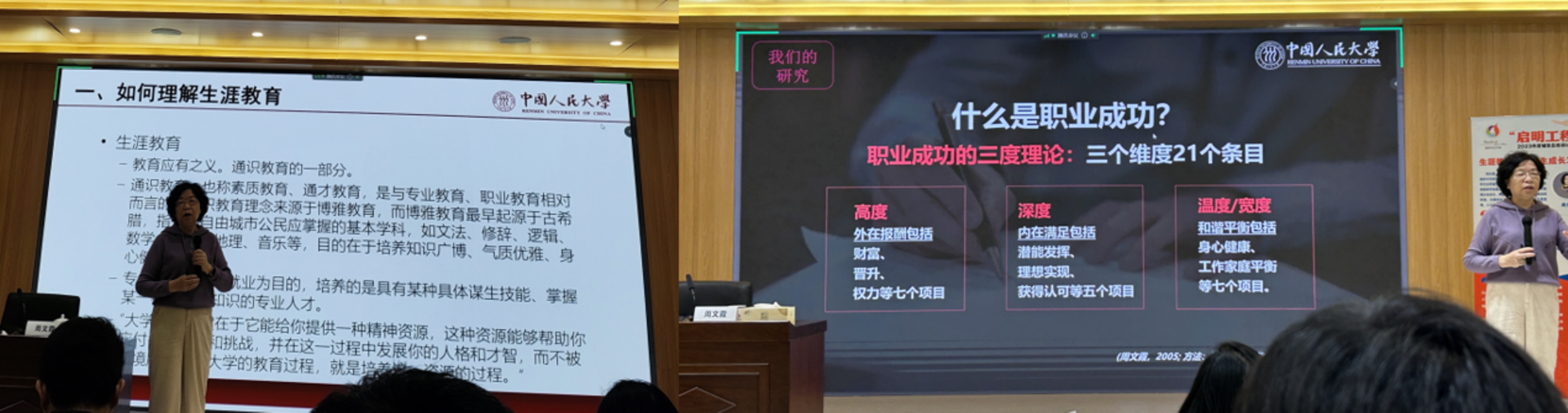 周教授围绕如何理解生涯教育、生涯教育的理论基础与发展、影响大学生生涯发展的现实依据和如何做好大学生的生涯教育工作这四个方面和与会同志进行了深入的交流。通过四个方面的阐述,由浅入深、由理论到实践的层层讲解,最终引导每位学生管理者要从理论精髓出发,方能抵入学生内心,达到对学生生涯教育的启智增慧的作用。