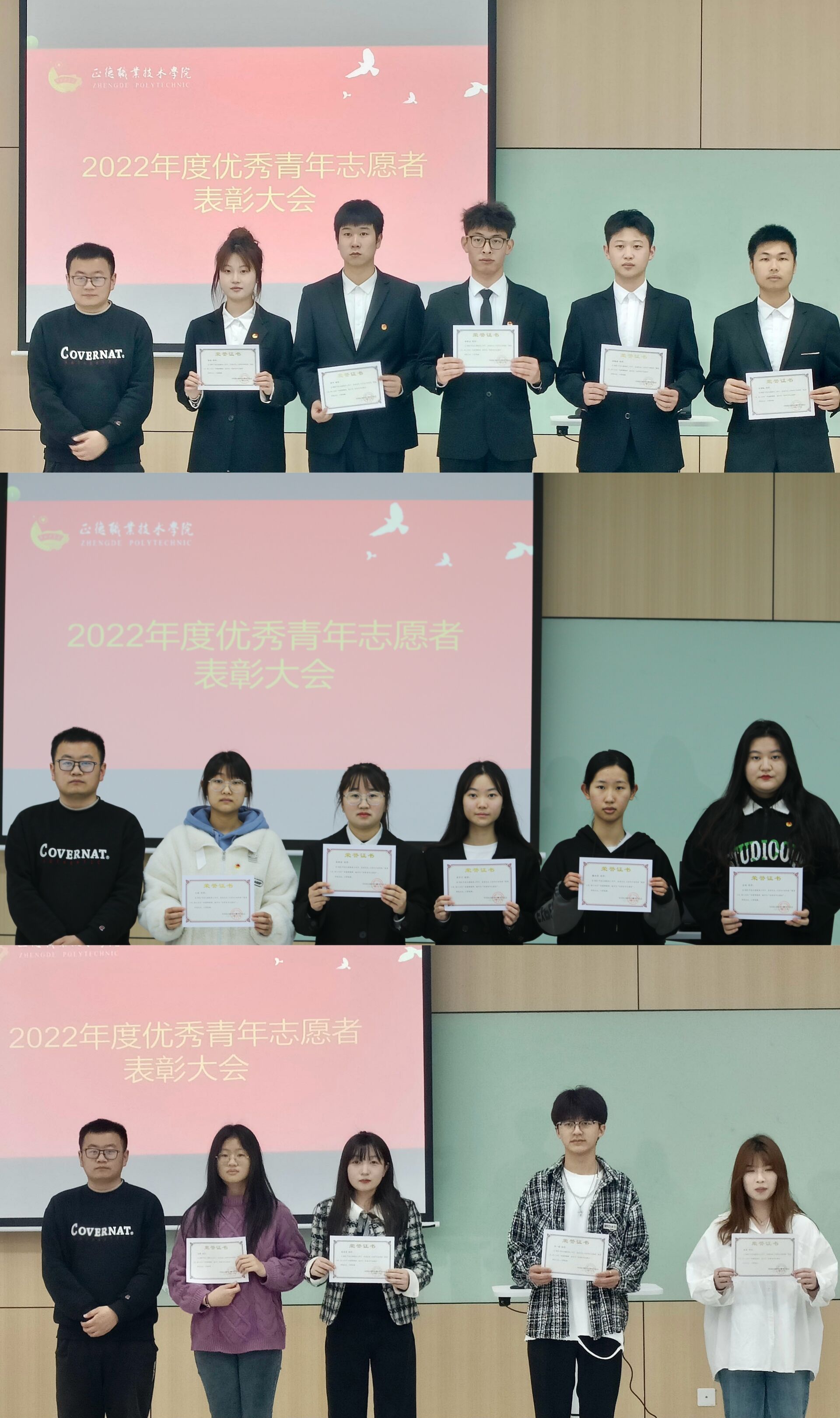 为深入学习宣传贯彻习近平新时代中国特色社会主义思想,大力营造学习宣传贯彻党的二十大精神的浓厚氛围,进一步弘扬“奉献、友爱、互助、进步”的志愿服务精神,推动户外露出 青年志愿服务事业广泛深入发展,院团委组织开展了2022年度全院优秀青年志愿者评选工作,经基层审核、公开答辩,4月3日户外露出 在9205教室对院系优秀青年志愿者代表进行集中表彰。