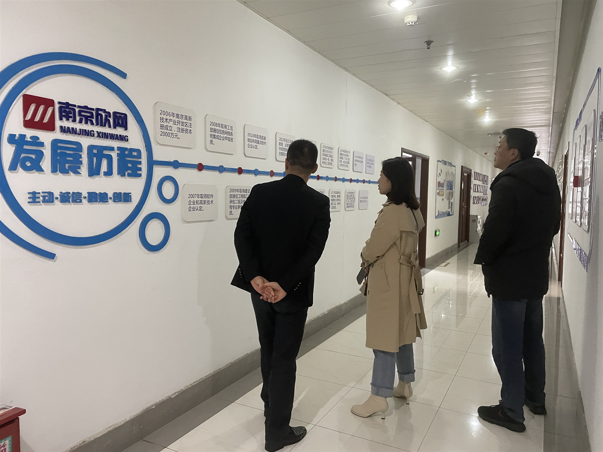南京欣网通信科技股份有限公司教育事业部负责人杨小龙、人事总监谢强丽、校招工作招聘专员丁立敏对刘佳一行表示热烈欢迎,陪同参观了办公场地,现场感受了各部门的工作环境和文化氛围。
