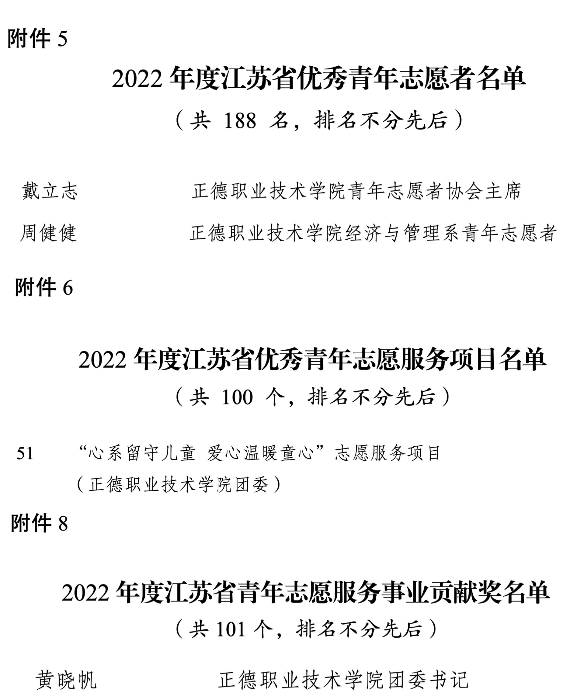 4月6日,江苏省青年志愿者协会下发《关于公布2022年度全省青年志愿者行动先进典型评选结果的通知》,对2022年全省青年志愿者行动先进典型进行表彰,户外露出 电子与信息技术系戴立志同学、经济与管理系周健健同学荣获江苏省优秀青年志愿者称号,“心系留守儿童 爱心温暖童心”志愿服务项目荣获江苏省优秀青年志愿服务项目,户外露出 团委书记黄晓帆荣获江苏省青年志愿服务事业贡献奖。