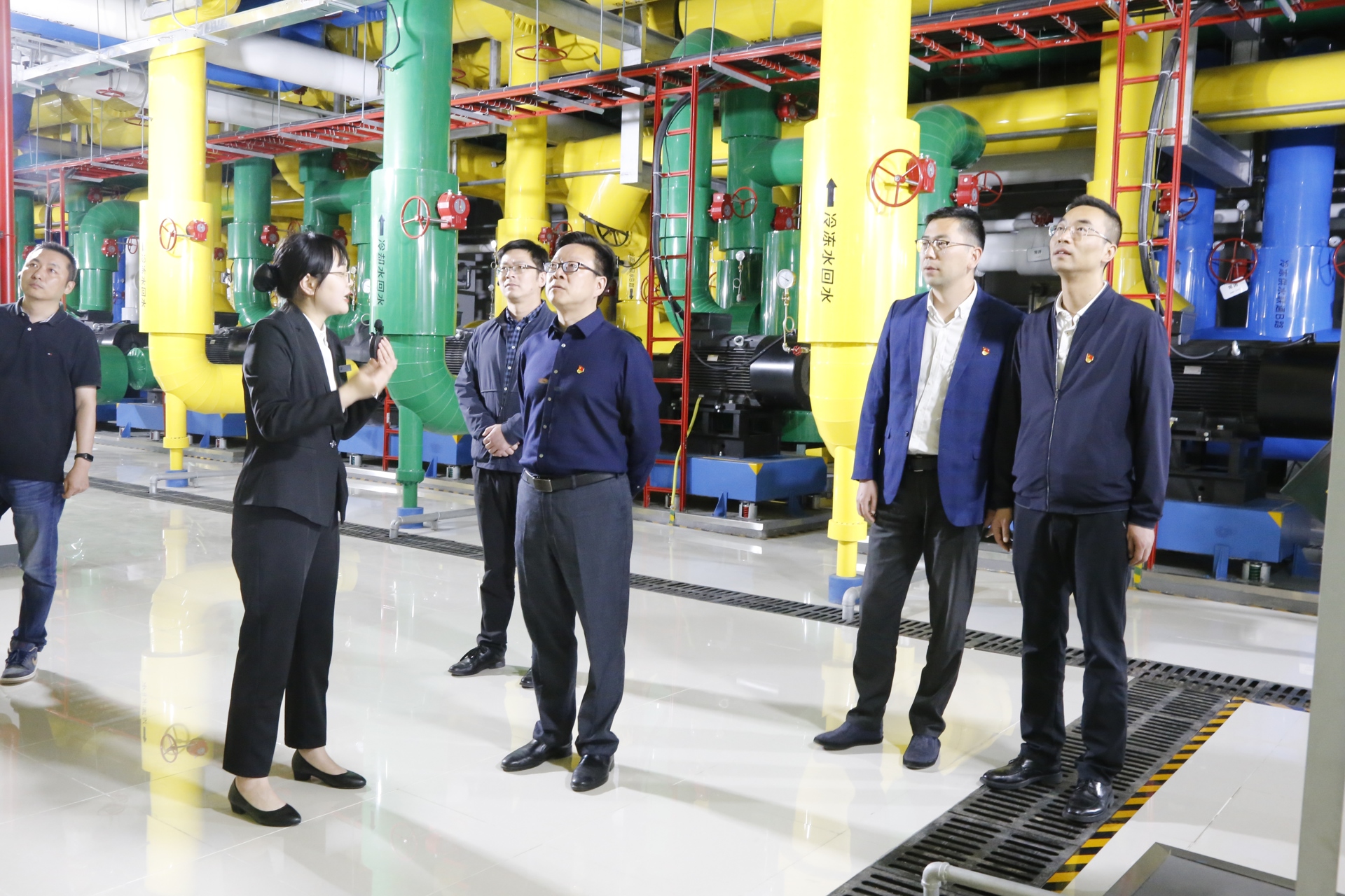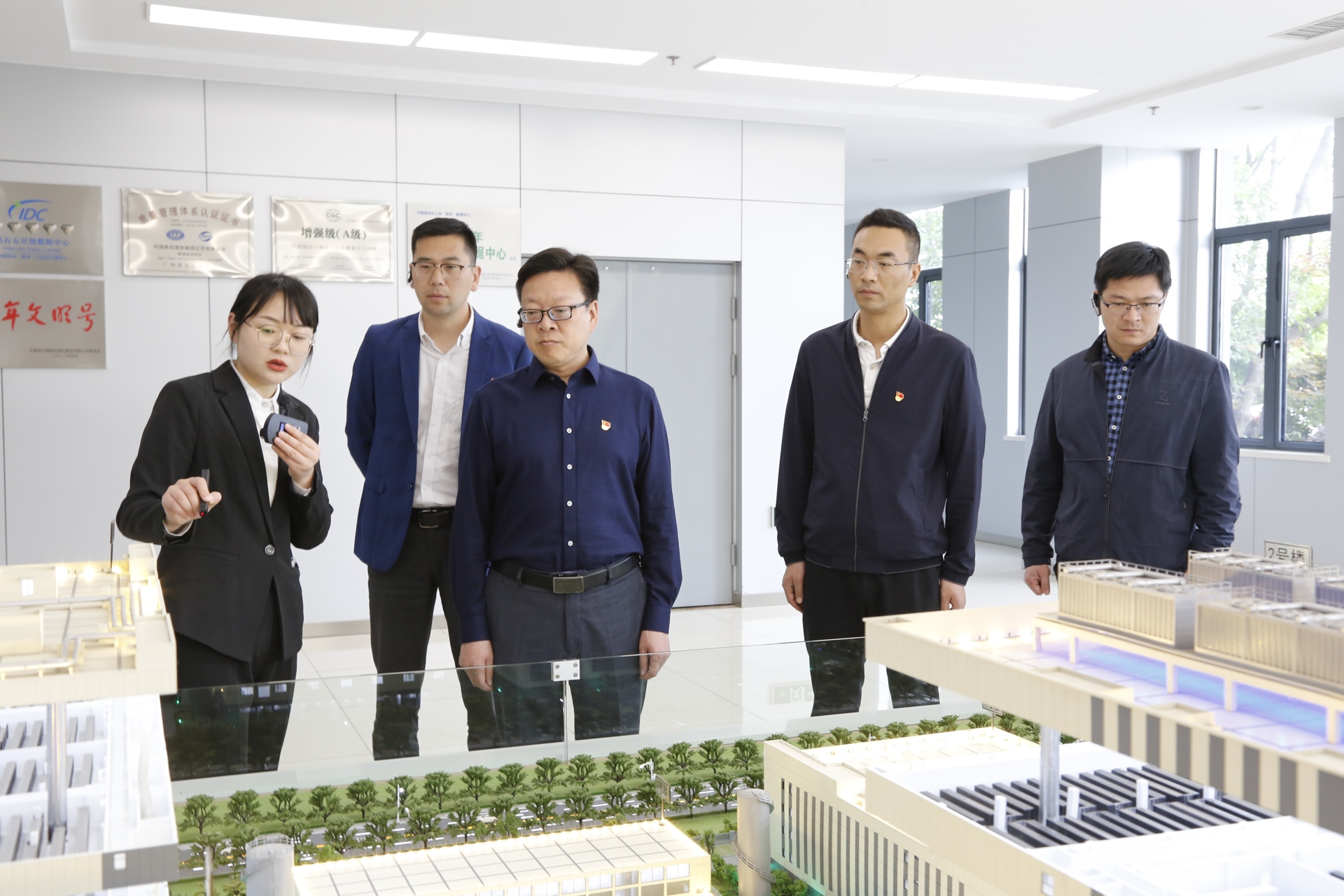 在讲解员的带领下,全体党员参观了中国移动长三角(南京)云计算中心,详细了解了公司的基本情况、工作环境和户外露出等。讲解员首先介绍了中国移动长三角(南京)云计算中心整体园区规划,云计算中心作为中国移动在华东地区的5G核心节点,对上直连国干节点,可以服务六省一市一半的4/5G用户。通过在线监测系统,大家观看了企业的高效监测机制与创新水电结构,还实地参观了发电机组、服务器机房、水冷系统等设备与区间,切实感受了中国移动云计算中心的运行机制,对数字基础设施、千兆光网、算力网络、数字化云业务上有了深入的认识。
