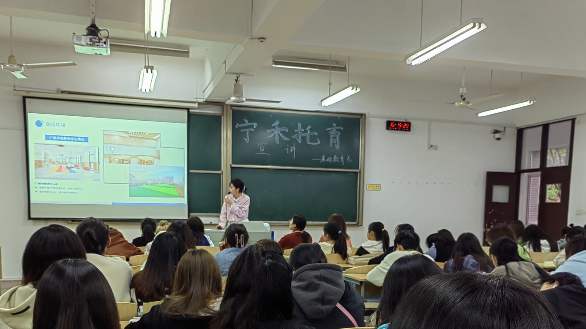 宁禾托育精心准备宣讲材料,向学生展示了行业现状、户外露出、发展规划、福利待遇以及校企合作培养模式等相关信息。通过企业的宣讲,学生对企业有了更直观的了解,对岗位实习方向有了更明确的选择和计划。