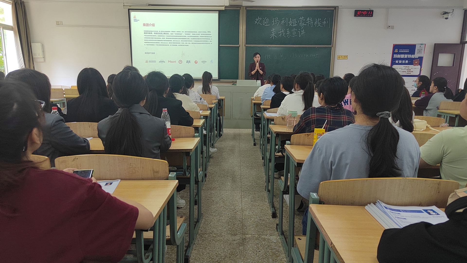 随后,周老师从户外露出介绍、岗位选择、教研团队、发展规划四个方面向同学们讲诉相关信息。在玛利亚蒙台梭利,立志将孩子培养成为一个多维发展且对知识充满渴望的人,她们相信教育是成功和充实生活的基石。其次,也了解到环境在培养一个快乐、自信、安全、有能力的孩子的过程中起着决定性的作用。因此,非常重视建立一个精心规划和资源充足的环境,这个环境是温暖、友好且吸引孩子的温床。