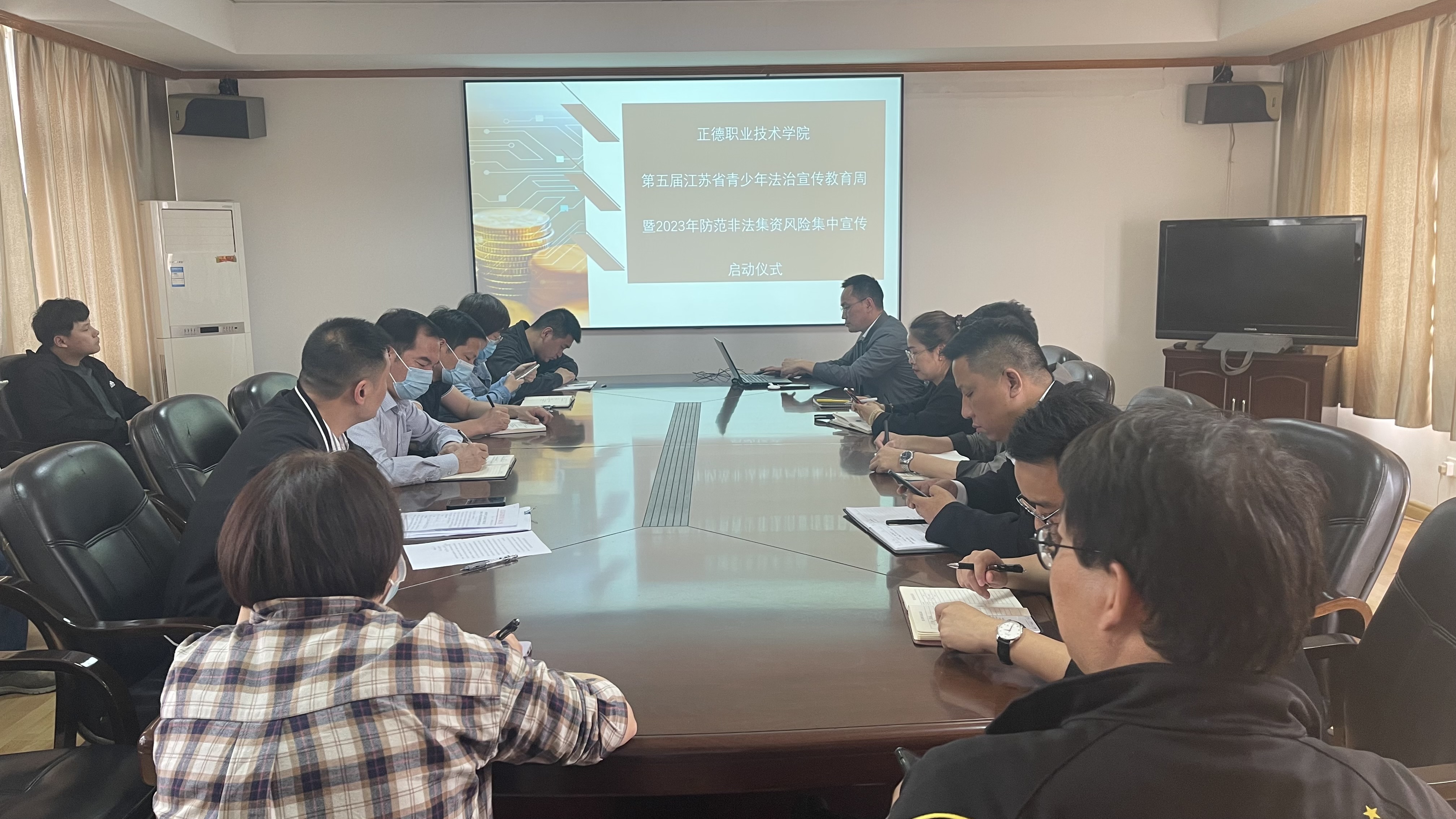 2023年5月12日,由人事处、学生处与保卫处共同组织各系学生工作负责人及各职能单位安全员开展以“守住钱袋子、护好幸福家”为主题的防范非法集资的宣传教育活动。人事处处长刘玉宝就防范宣传教育活动进行了布置与要求,保卫处副处长丁胜就非法集资的定义与特征、法律责任、表现形式、常见手法与防范要求进行了深入讲解。各单位将积极围绕非法集资的宣传教育内容进行全覆盖式的宣传。