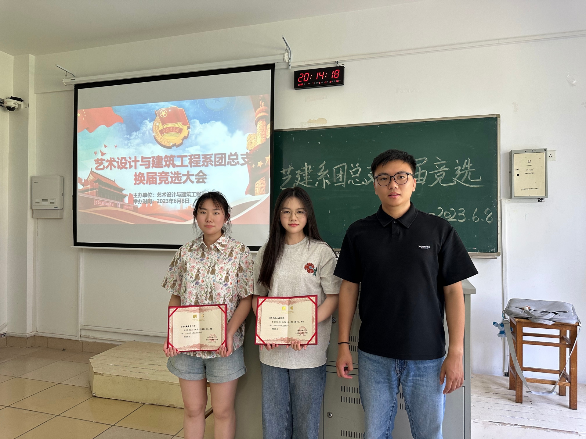最后,党支部书记陈宏波对各学生会干部颁发聘书并对本次述职评议大会进行总结。对艺建系学生会干部一年以来的辛勤付出表示感谢,并表示未来一届学生会的同学们要不断提高思想觉悟并及时在活动中总结经验教训、定期反思、树立全局意识,要继续保持认真严谨的工作态度,牢记服务宗旨,希望学生会在未来能够以更加饱满的姿态持续前进。