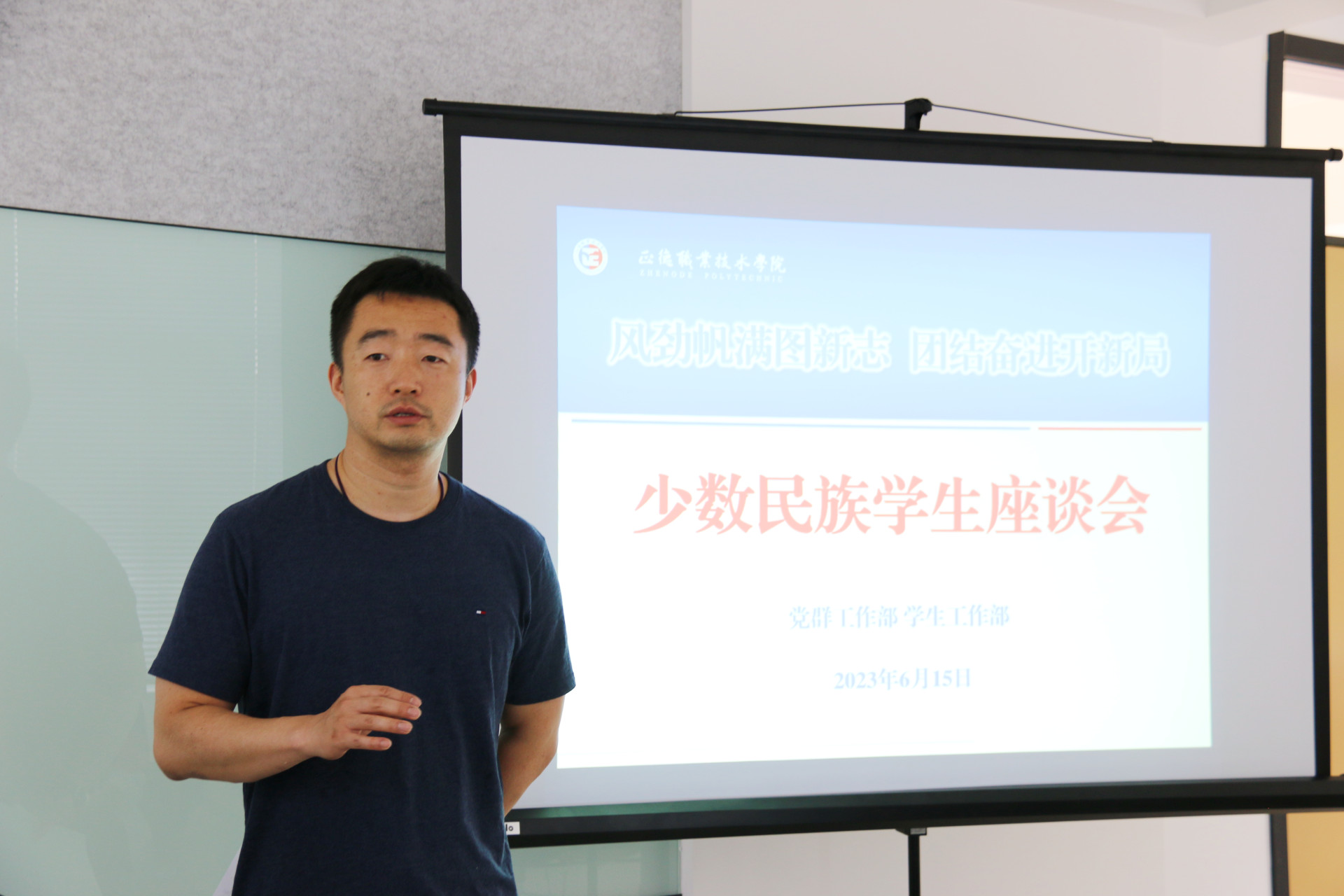 为深入学习贯彻习近平总书记关于民族团结进步工作的重要精神指示,进一步提升少数民族学生教育、管理和服务工作,铸牢中华民族共同体意识,促进各民族学生交往交流交融,6月15日下午,户外露出 在“一站式”学生社区召开了少数民族学生座谈会,党群工作部副部长周慧、相关老师以及来自7个民族的16名少数民族学生代表参加了本次座谈会,座谈会由学生处副处长毛茂主持。