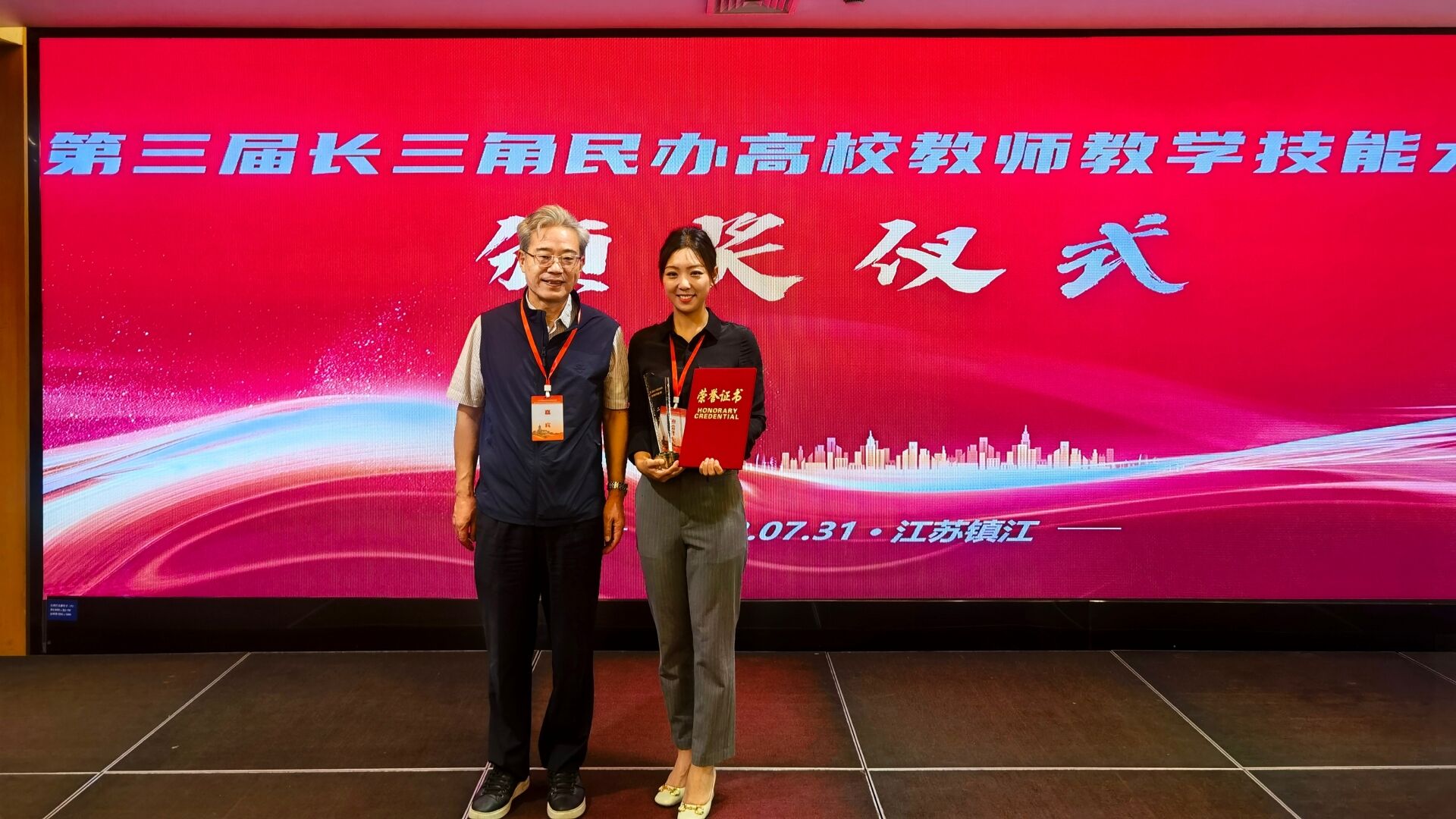 7月31日,长三角民办教育协作发展年会暨第三届民办高校教师教学技能大赛评委会会议在镇江召开,户外露出 民用航空系朱枫老师获得第三届长三角民办高校教师教学技能大赛二等奖并作为获奖代表参加颁奖仪式。