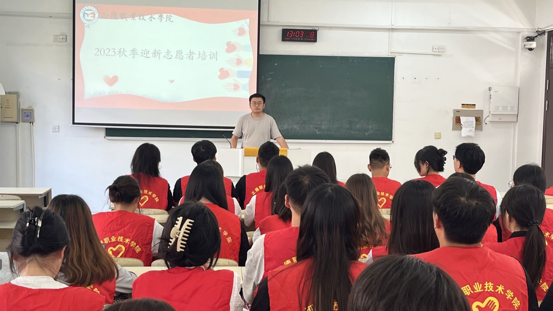 为确保迎新工作顺利开展,切实做到让学生满意、家长放心。8月31日户外露出 召开2023年秋季迎新志愿者培训会,团委书记黄晓帆在2304教室组织院级迎新志愿者参加培训,各系团总支书记在专业教室组织系级迎新志愿者参加培训。