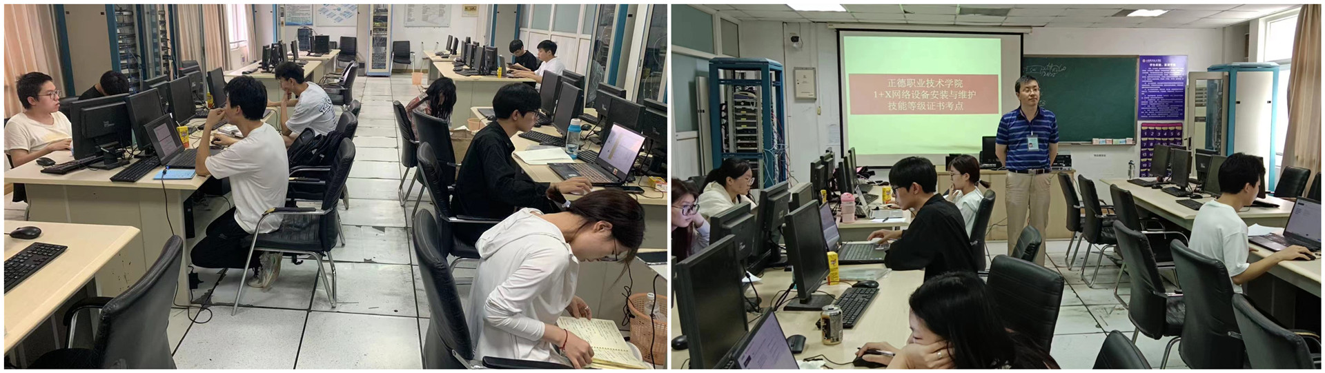 “1+X”职业技能等级考核中,考场纪律严格,考生认真思考,展现了良好的考风考纪;各工作组成员各司其职,有序、高效地推进线上理论考核和线下实操考核,圆满完成“1+X”职业技能等级认证考试工作。最终,11名学生全部顺利完成考试,其中9名学生参加《网络设备安装与维护(中级)》考证,2名学生参加《网络设备安装与维护(高级)》考证,经专家评卷,参加考试的11名学生全部通过考核。